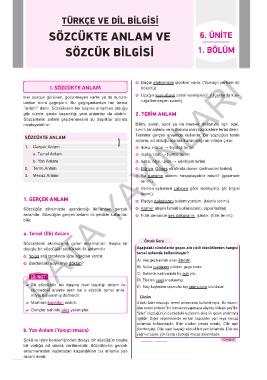 SÖZCÜKTE ANLAM VE 6. ÜNİTE