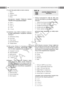 17. Lozan’dan geriye kalan sorunlar arasında; TEST 16