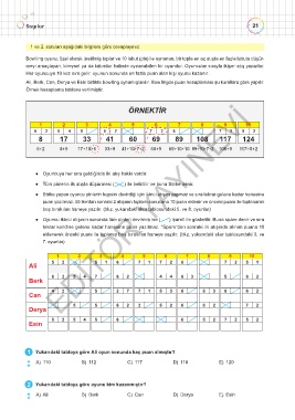 Al�, Berk, Can, Derya ve Es�n b�rl�kte bow l�ng oynamışlardır. Bow l�ngde puan hesaplaması şu kurallara göre yapılır.