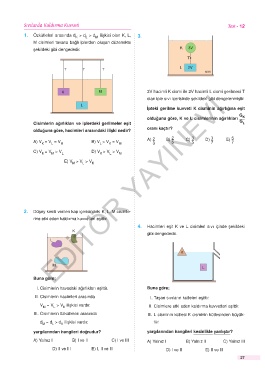 2. Düşey kesiti verilen kap içerisindeki K, L, M cisimle-