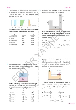 1. Taban alanları ve yükseklikleri eşit kesitleri şekilde- 3. Bir ucu açık diğer ucu kapalı bir kabın içinde d ve d
