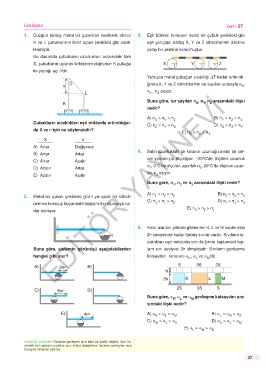 1. Düzgün türdeş metal bir çubuktan kesilerek alınan 3. Eşit bölmeli homojen metal bir çubuk şekildeki gibi