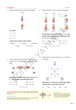 I. T > T 2 İplerde oluşan gerilme kuvvetleri T , T ve T ara-