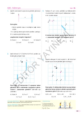 1. Işıklı K cismi düzlem ayna önüne şekildeki gibi konul- 3. Noktasal X ışıklı cismi, şekildeki eşit bölmelendiril-