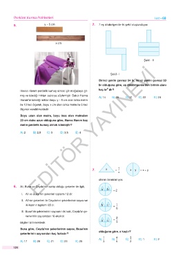 Hanım'ın istediği miktarı boyu y – 5 cm olan tahta metre