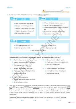 1. Numaralarla belirtilen fiilimsi türlerinin hangi cümlelerde kullanılmadığını bulunuz.