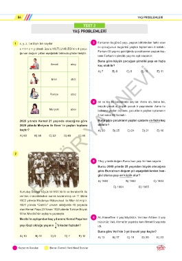 1 x, y, z, t ardışık tek sayılar 3 Furkan’ın bugünkü yaşı, yaşları birbirinden farklı olan