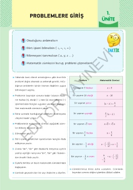 problemi doğru okumak ve anlamak gerekir. Anla- Problem Matematik Cümlesi