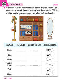 B. Görseldeki eşyaların sayılarını tahmin edelim. Eşyaları sayalım. Tah-