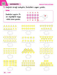 MATEMATİK NESNE SAYISINI BELİRLEME B. Aşağıdaki örneği inceleyelim. Sembollerin sayısını yazalım. Örnek 1 2 3 4 5 Sembolleri sayalım. En son söylediğimiz sayıyı 10 noktalı alana yazalım. 6 7 8 9 10 8 1. SINIF