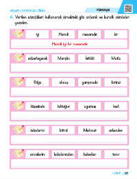A. Verilen sözcükleri kullanarak örnekteki gibi anlamlı ve kurallı cümleler