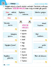 sözcüklerini “SÖZCÜK HAVUZU”ndan bulup örnekteki gibi yazalım.