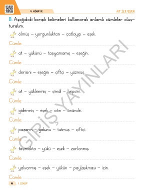 B. Aşağıdaki karışık kelimeleri kullanarak anlamlı cümleler oluş-