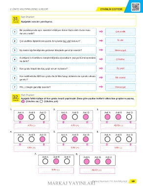 32. Aşağıda farklı kişilere ait kan grubu tespiti yapılmıştır. Buna göre yapılan testlerin altına kan gruplarını yazınız.