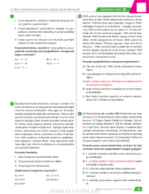 ması d�ğer canlı türler�n� de etk�leyecek ve ekos�stemdek� Parçada geçen numaralandırılmış cümleler ile ilgili