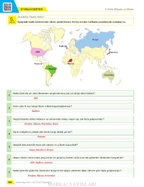 Etkinlik Aşağıdaki harita üzerinde bazı ülkeler gösterilmiştir. Verilen soruları haritadan yararlanarak cevaplayınız.