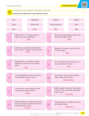 Etkinlik Aşağıda boş bırakılan yerlere uygun kelimeleri yazınız.