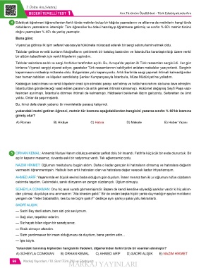 Page 56 - 10. SINIF TÜRK DİLİ VE EDEBİYATI FAVORİ BECERİ TEMELLİ SORU BANKASI