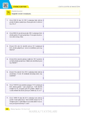 olduğuna göre 1 aylık kullanım sonunda elektrik fatura-