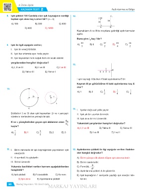 9. Işık �le �lg�l� aşağıda ver�len; A) B) 6 C) D) E)