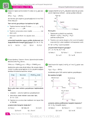 1 Kapalı bir kapta eşit mollerdeki Fe katısı ve O gazı ara- 3 Aşağıda NaOH ile H PO bileşikleri arasında gerçekle-