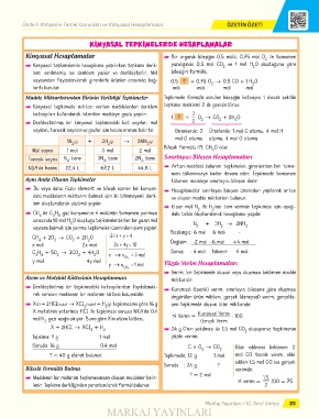 Kimyasal Hesaplamalar Q Bir organik bileşiğin 0,5 molü, 0,75 mol O ile tamamen