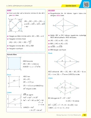 Q Kenar uzunlukları eşit ve kenarları birbirine dik olan dört- Q Köşegenlerinden biri, iki ikizkenar üçgenin tabanı olan