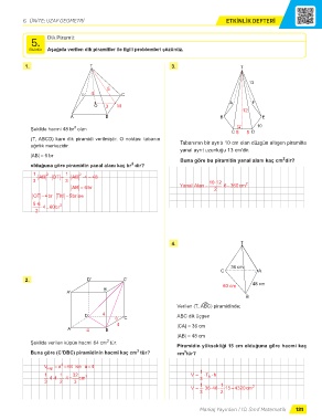 Etkinlik Aşağıda verilen dik piramitler ile ilgili problemleri çözünüz.
