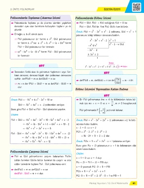 Polinomlarla Toplama Çıkarma İşlemi Polinomlarda Bölme İşlemi