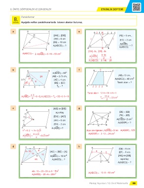 Etkinlik Aşağıda verilen paralelkenarlarda istenen alanları bulunuz.