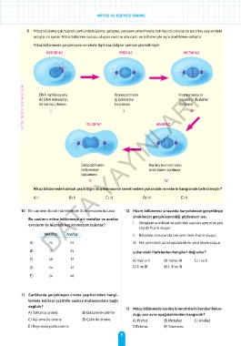 10 Bir canlının diploit hücrelerinde 24 kromozom bulunur. 12 Hücre bölünmesi sırasında karyokinezin gerçekleşip