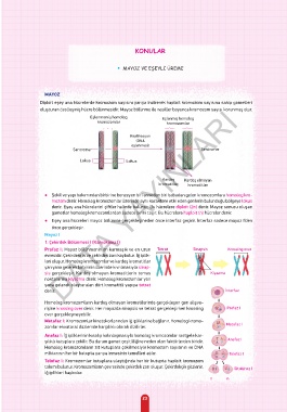 oluşturan özelleşmiş hücre bölünmesidir. Mayoz bölünme ile nesiller boyunca kromozom sayısı korunmuş olur.