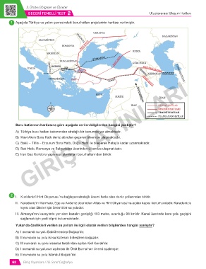 1 Aşağıda Türkiye ve yakın çevresindeki boru hatları projelerinin haritası verilmiştir.