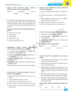 Tanzimat Dönemi’nde Roman KAZANIM TESTI 2