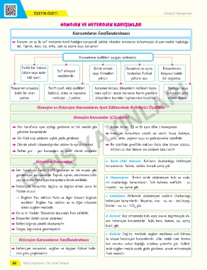 ÖZETİN ÖZETİ Ünite 2: Karışımlar
