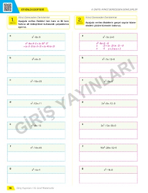 ETKİNLİK DEFTERİ 4. ÜNİTE: İKİNCİ DERECEDEN DENKLEMLER