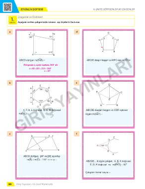 Etkinlik Aşağıda verilen çokgenlerde istenen açı ölçülerini bulunuz.