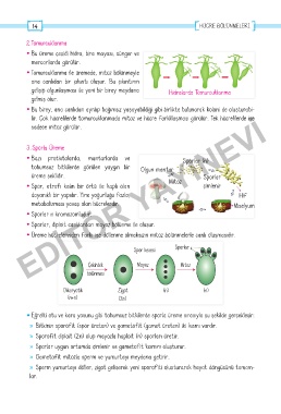 » Bitkinin sporofit (spor üreten) ve gametofit (gamet üreten) iki kısmı vardır.