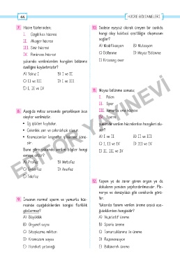 E) I, II ve IV 11. Mayoz bölünme sonucu;