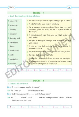 1. reservation a. The place where you leave an airport building to get on a plane.