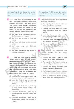 E) Food tours don’t provide any cultural or 20. Many festivals are celebrated with