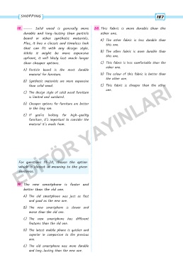18. ---- Solid wood is generally more 20. This fabric is more durable than the