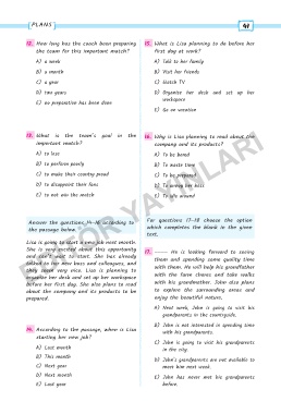 13. What is the team’s goal in the 16. Why is Lisa planning to read about the