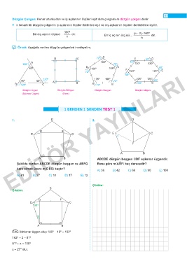 • n kenarlı bir düzgün çokgenin iç açılarının ölçüleri birbirine eşit ve dış açılarının ölçüleri de birbirine eşittir.