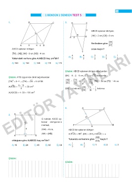 Çözüm: ABCD eşkenar dörtgen olduğundan