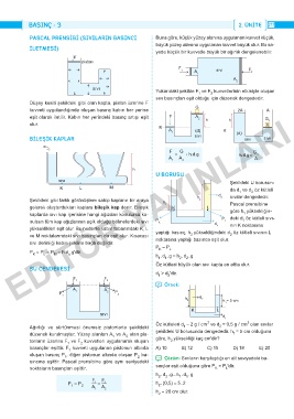 sıncına eşittir. Pascal prensibine göre aynı seviyedeki ̚ Çözüm: Sıvıların karşılaştığı en alt seviyedeki ba-