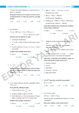 A) Yalnız I B) Yalnız II C) I ve III • Bir kimyasal tepkimenin % verimi; .......... verimin