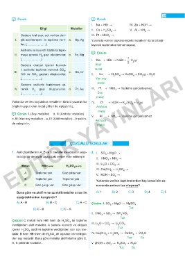 II. meye girerek H gazı oluştururlar. b� Fe, Mg ̚ Çözüm: