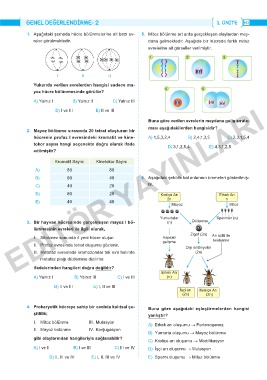 1. Aşağıdaki şemada hücre bölünmelerine ait bazı ev- 5. Mitoz bölünme art arda gerçekleşen olaylardan mey-