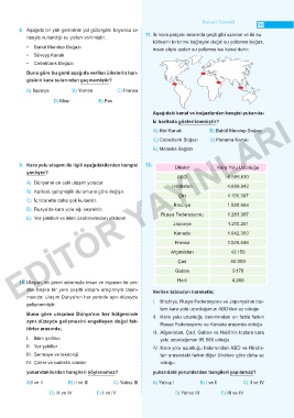 8. Aşağıda bir yük gemisinin yol güzergâhı boyunca sı-